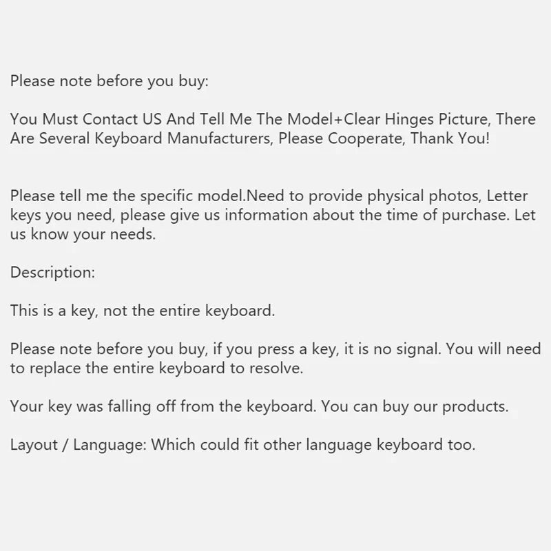 You Must Contact US And Tell Me The Model+Clear Hinges Picture, There Are Several Keyboard Manufacturers, Please Cooperate, Thank You!